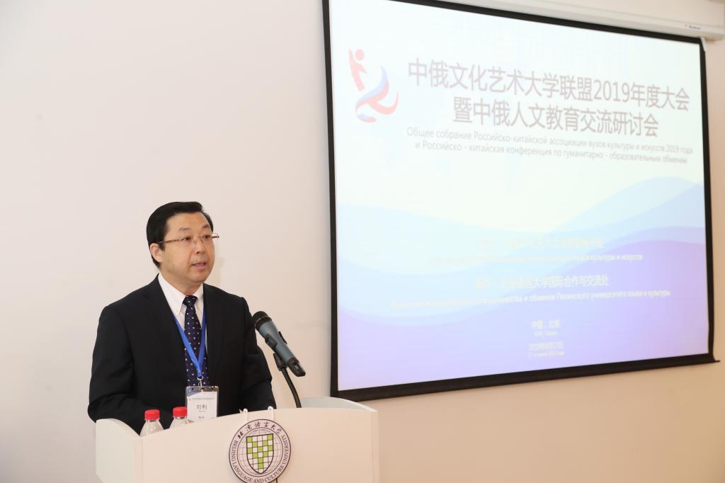 作为联盟中方牵头院校及会议主办方,刘利校长出席大会开幕式并致欢迎辞。他说,今年正值中俄建交70周年,两国元首前几日又将两国关系提升为“新时代中俄全面战略协作伙伴关系”,这意味着中俄关系跨步进入更高水平、更大发展的新时代。近年来两国各类合作日益深化,成果丰硕。尤其在国际学术交流领域,更是发展迅速,遍地开花。北京语言大学作为联盟的中方牵头院校,愿与其他联盟单位一道,充分利用这次大会的宝贵机会,发挥好联盟的桥梁和纽带作用,进一步强化中俄语言、文化、艺术交流与合作,共同推动两国教育事业发展。他也希望各成员单位能够发挥成员高校的主动性与积极性,整合与共享资源,利用中俄高校间的合作平台,在语言学习、艺术文化交流等方面展开全方位、多层次的合作。