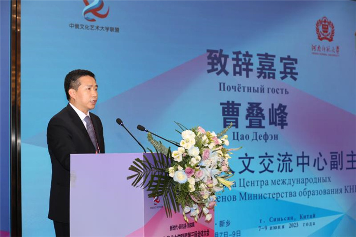 教育部中外人文交流中心副主任曹叠峰在致辞中充分肯定了中俄文化艺术大学联盟为促进中俄教育合作和人文交流作出的重要贡献。教育部中外人文交流中心愿意和大家一道,全力推动中俄文化艺术大学联盟发展,为增进两国人文交流与合作,深化中俄新时代全面战略协作伙伴关系作出积极贡献。